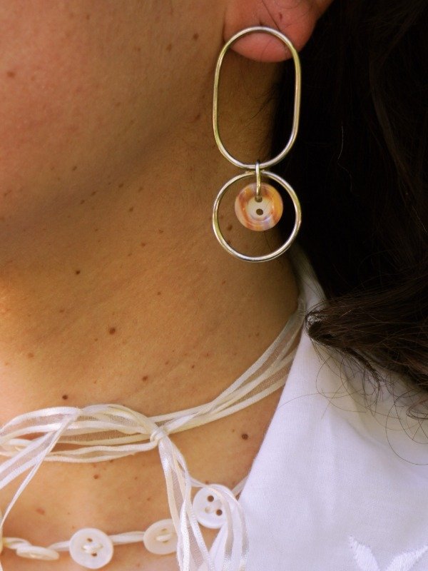 Par de aros realizados en alpaca con pasante de acero quirúrgico. Botones de la mercería de Alicia, San Telmo.