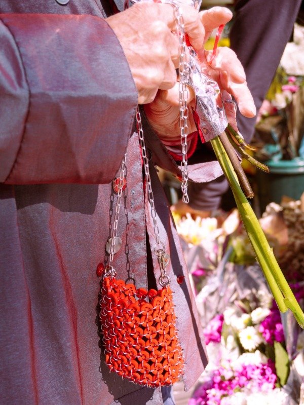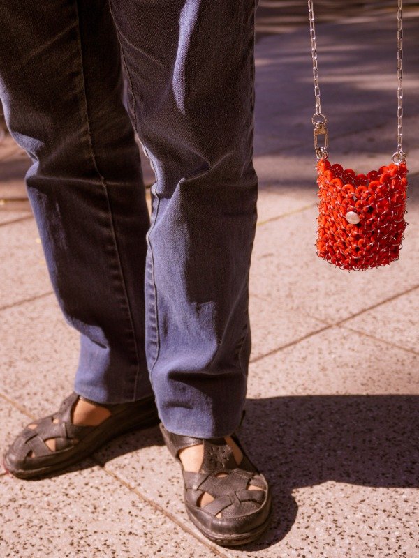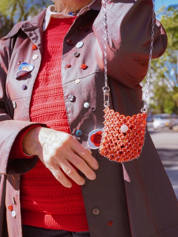 Carterita petit realizada a partir de botones. Con cadena regulable.