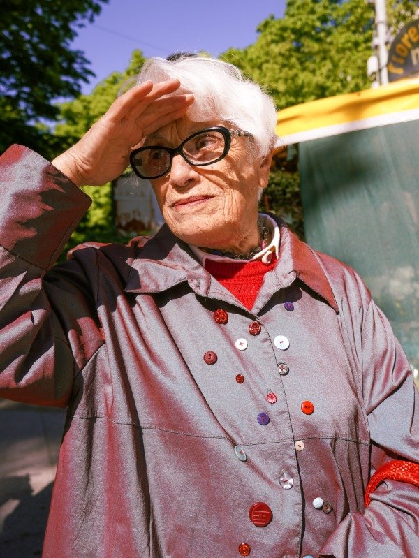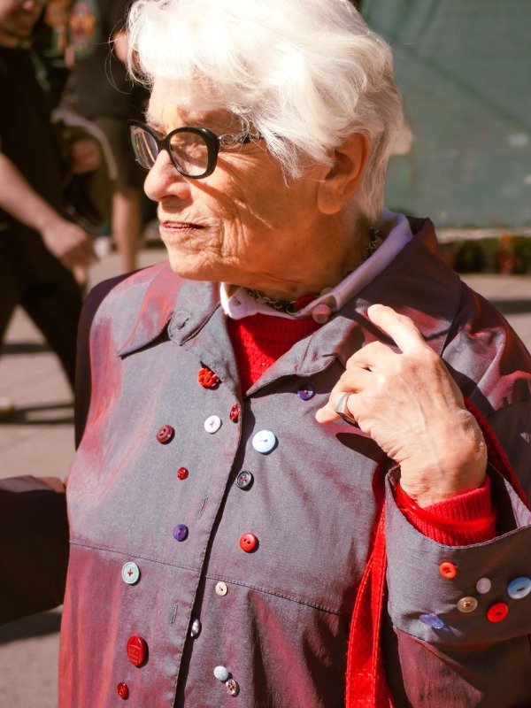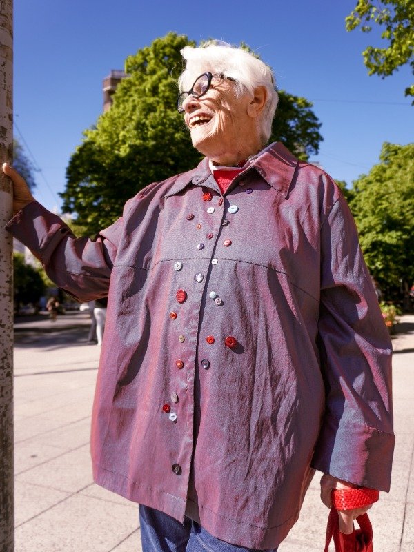 Chaqueta vintage intervenida con botones cosidos a mano.