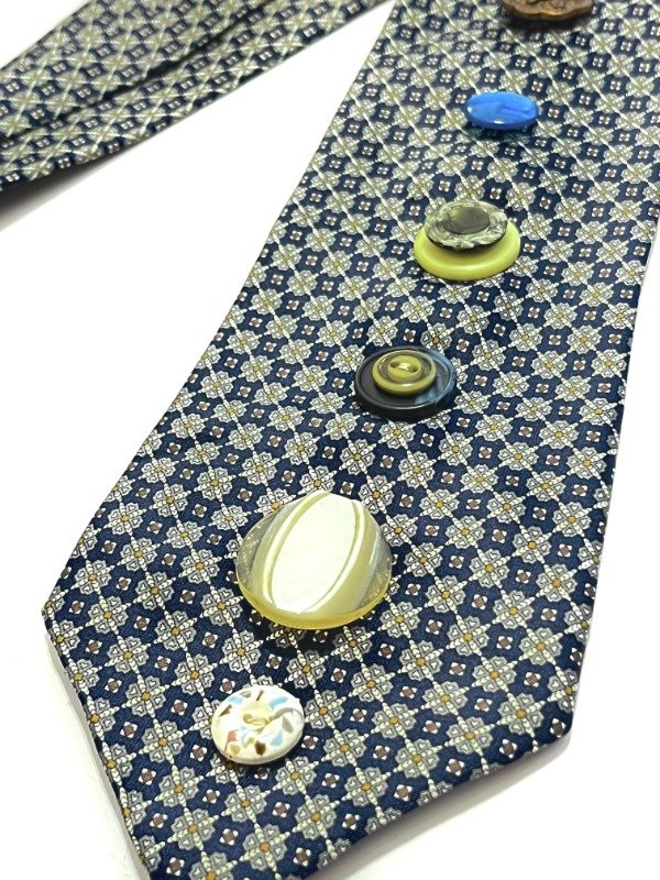 Corbata vintage de la marca intervenida con botones de diferentes colecciones
